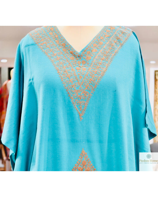 Indulge in the ultimate blend of luxury and style with our Long Kaftan Collection, crafted from super fine cashmere and enhanced with exquisite Ari embroidery and a touch of Georgette. Each kaftan is designed to offer a perfect balance of comfort and sophistication, making it an essential addition to your wardrobe.