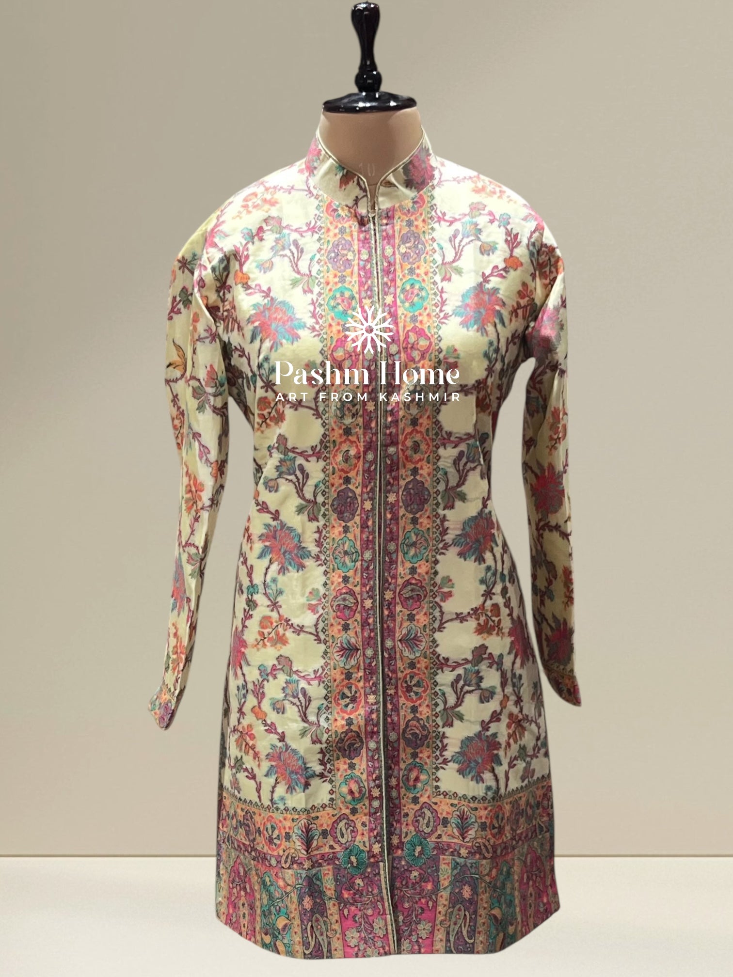 Cream Fine Silk Kani Weaved Coat