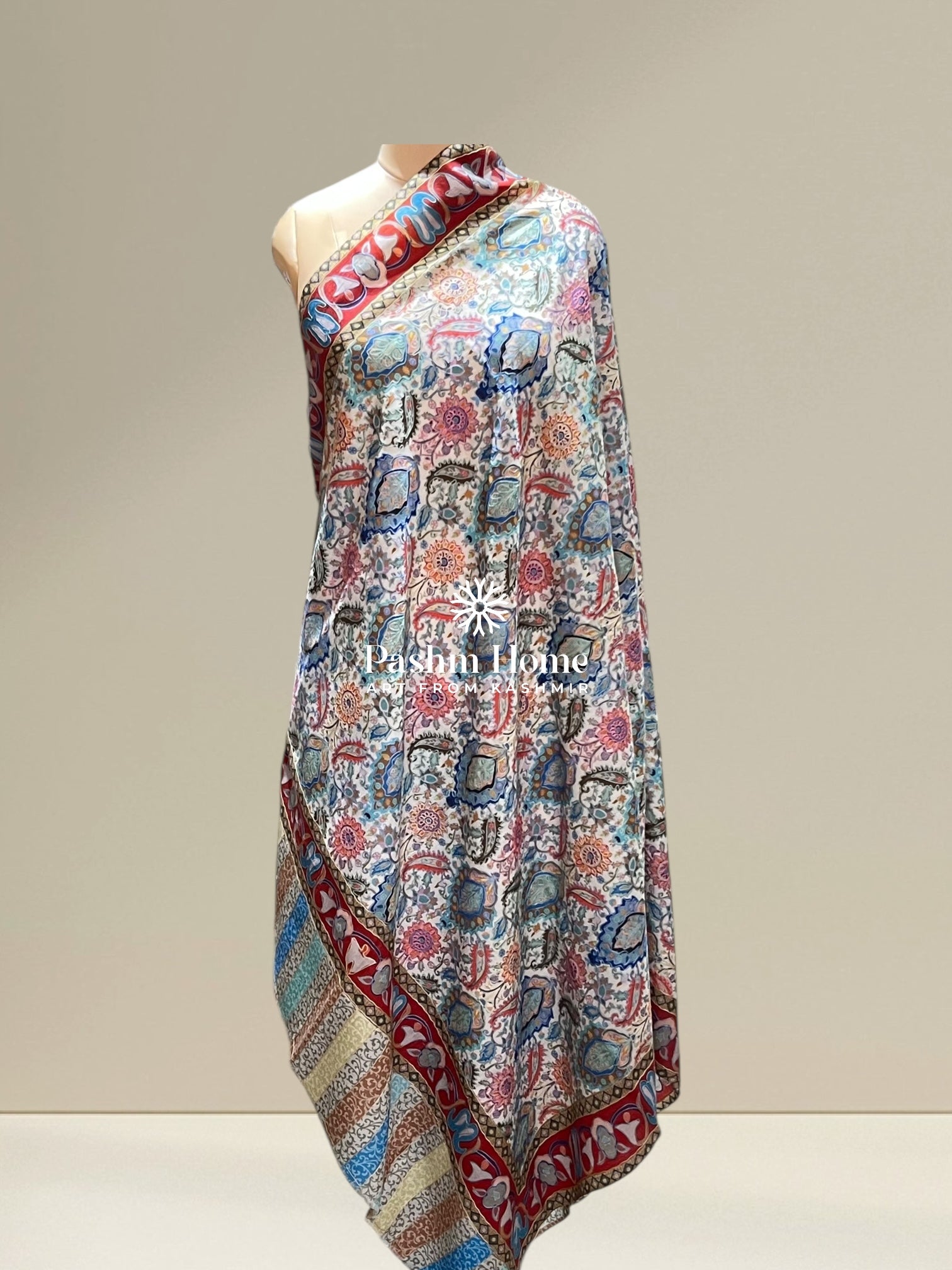 Multicolour Fine Wool Kalamkari Shawl With Intricate Work