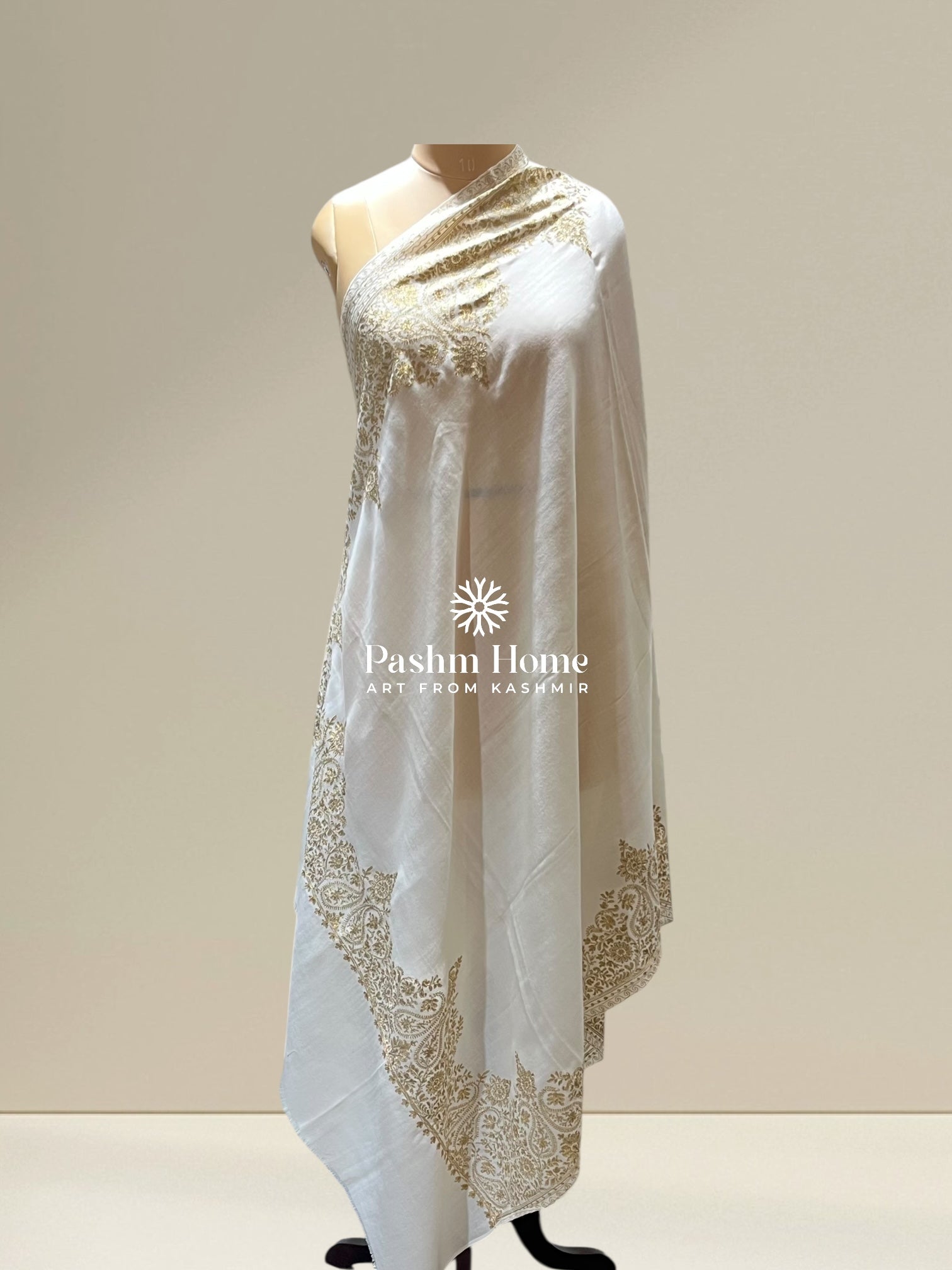 White Fine Wool Zari Shawl